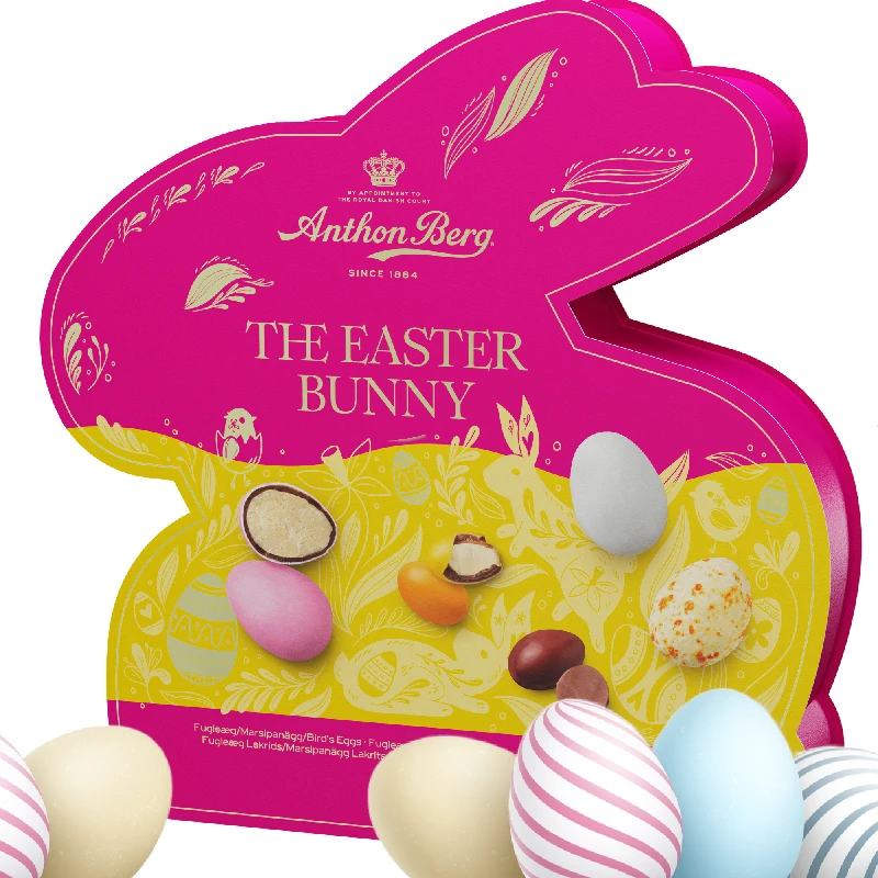 Sukker, MANDLER 13%, kakaosmør, SØDMÆLKSPULVER, kakaomasse, abrikoskerner, glucosesirup, ristede HASSELNØDDER, SØDMÆLKSPULVER, MÆLKESUKKER, fortykningsmiddel (arabisk gummi), emulgeringsmiddel (lecithin), risstivelse, rålakrids, helt hærdet vegetabilsk fedt (palmekerne), overfladebehandlingsmiddel (shellak), ammoniumklorid, modificeret katoffelstivelse, konserveringsmiddel (sorbinsyre), farvestoffer (bl. caotener, carmin, vegetabilsk kul), vaniljeekstrakt, naturlig aroma, fugtighedsbevarende middel (invertase). Kan indeholde spor af gluten.