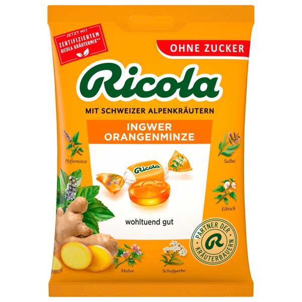 Ricola Ingefær Appelsin Mynte u/sukker 75 g.